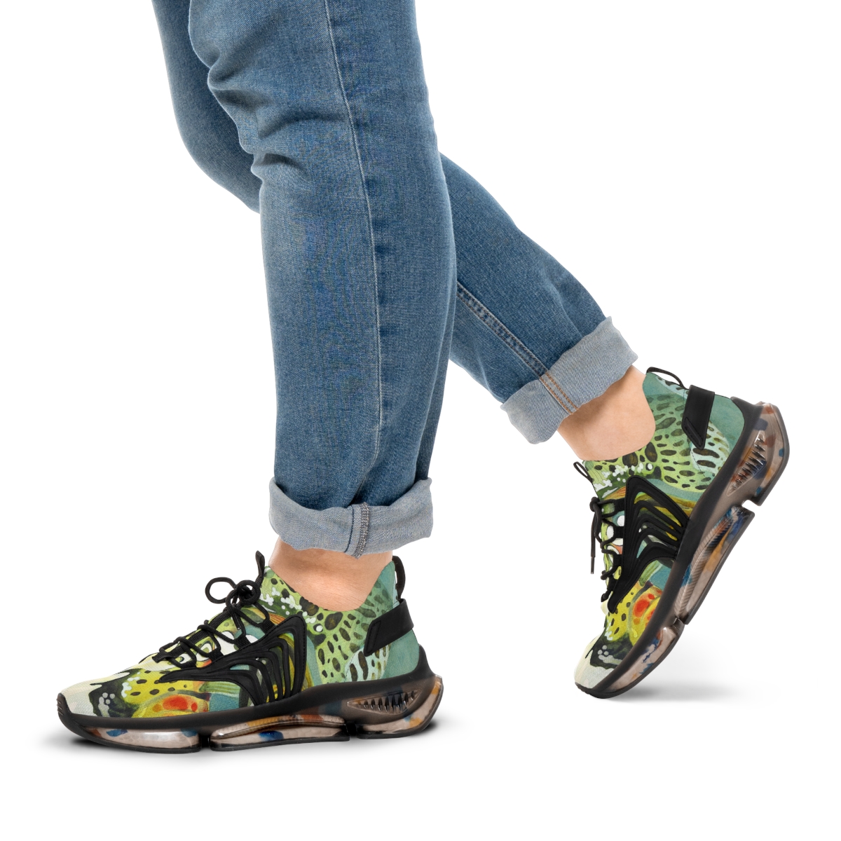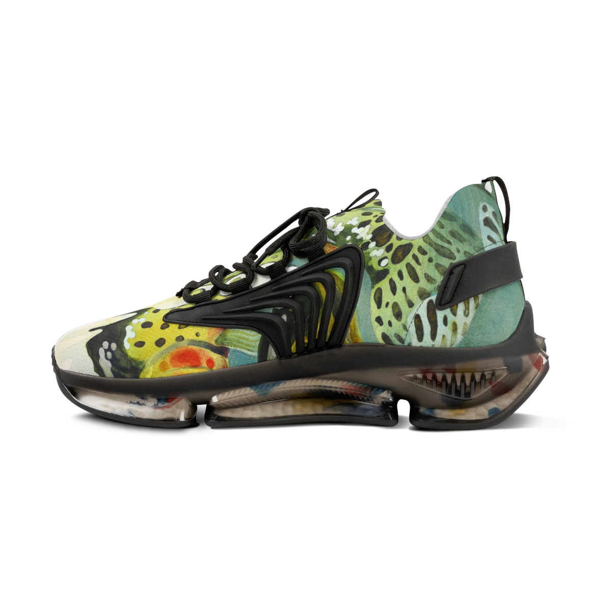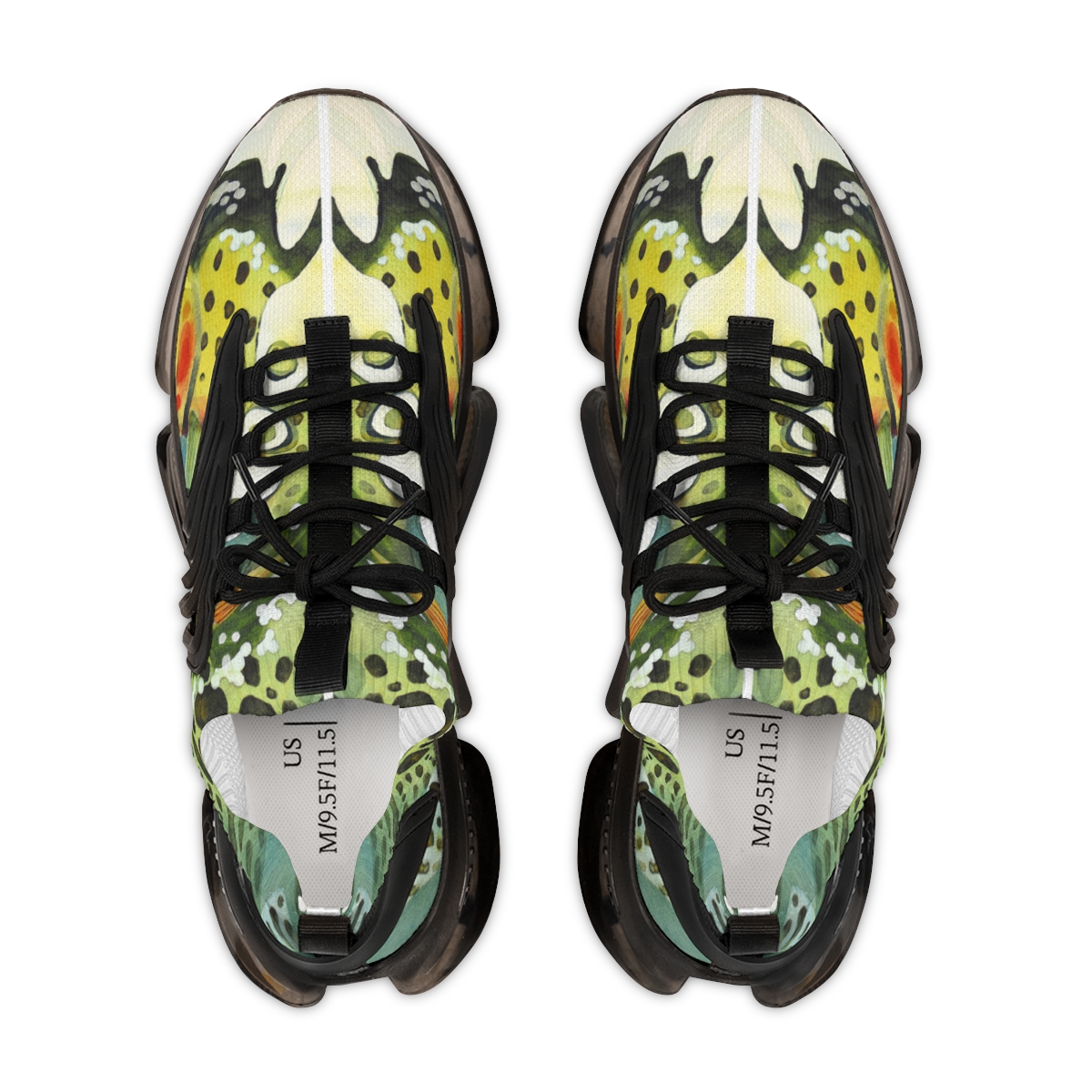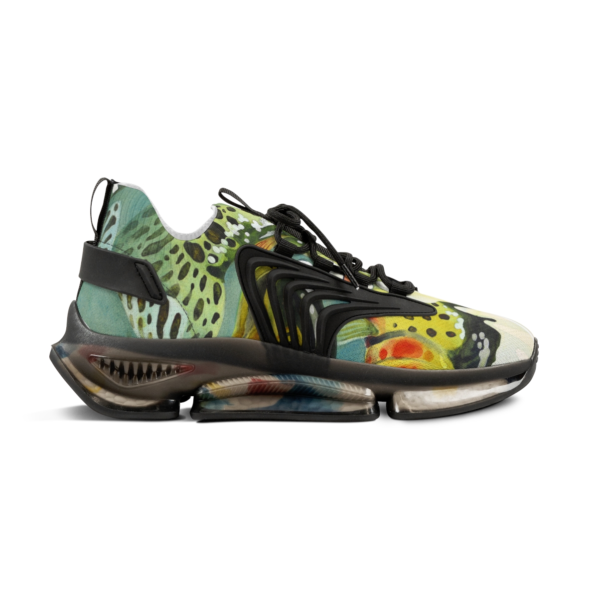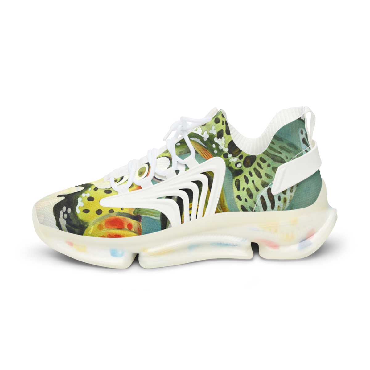 Catch attention when you’re not catching fish. These sports sneakers are designed with the colors and patterns of a greenback cutthroat trout in mind and come with black or white trim options. They include a memory foam sole that adjusts to your feet’s unique contours over time, for enhanced comfort.