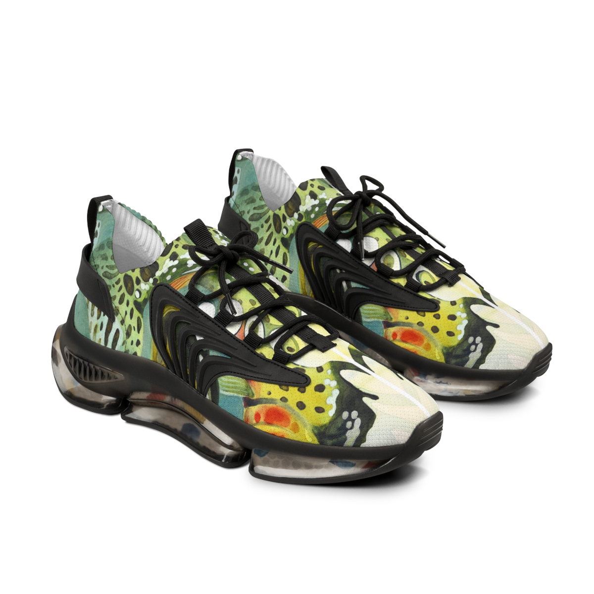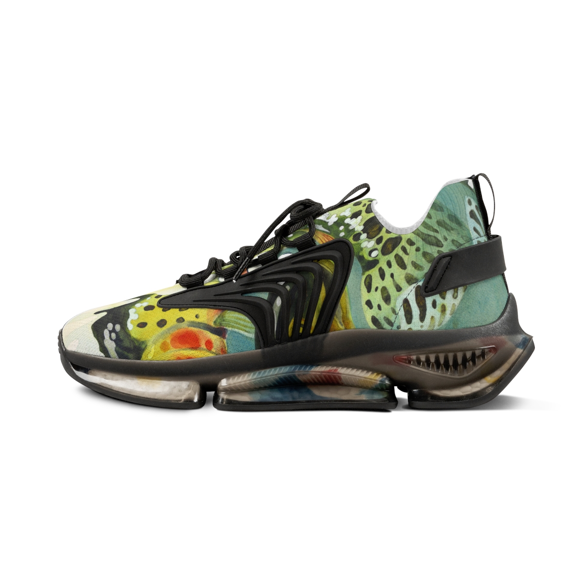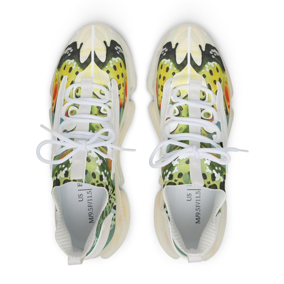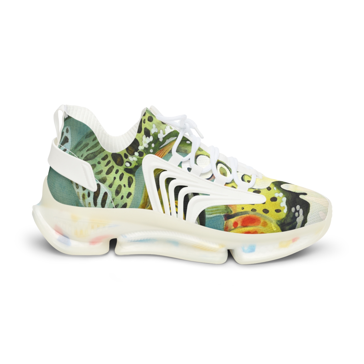 Catch attention when you’re not catching fish. These sports sneakers are designed with the colors and patterns of a greenback cutthroat trout in mind and come with black or white trim options. They include a memory foam sole that adjusts to your feet’s unique contours over time, for enhanced comfort.