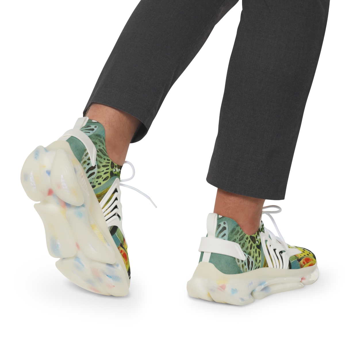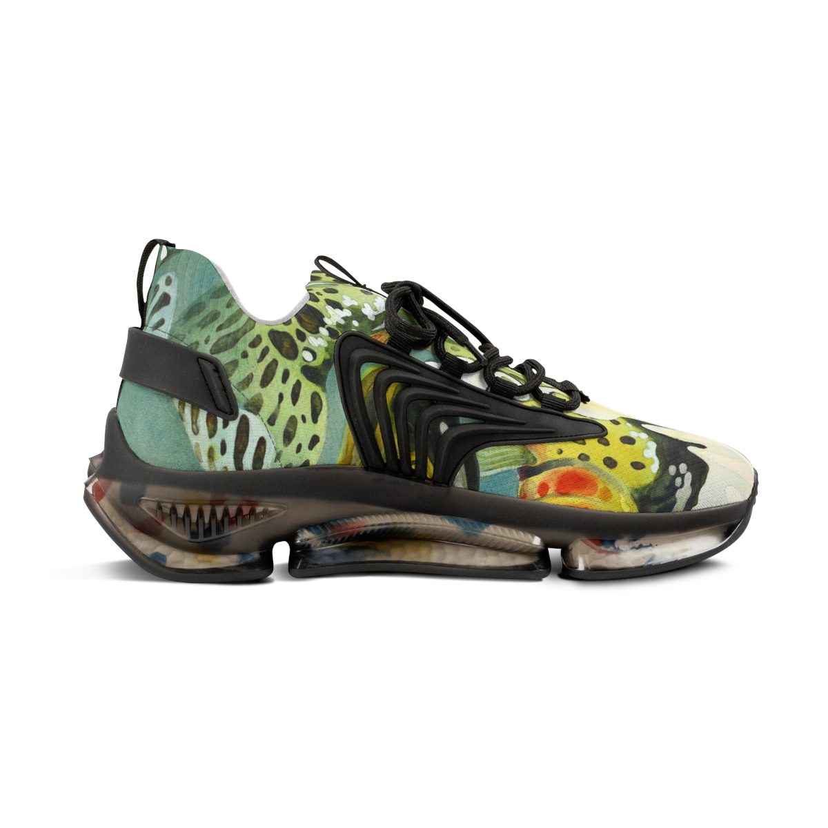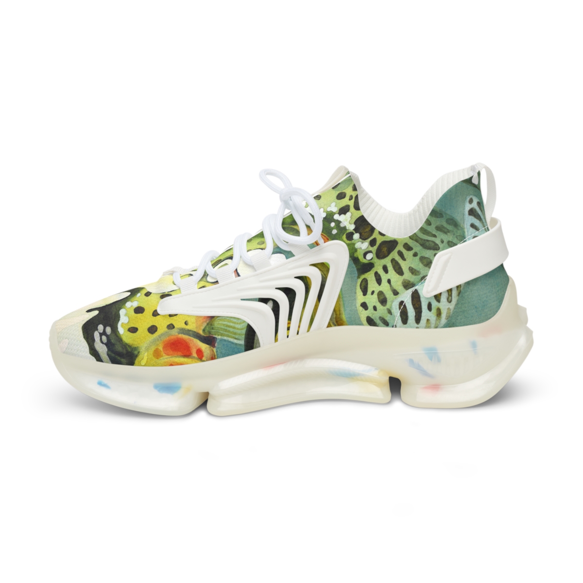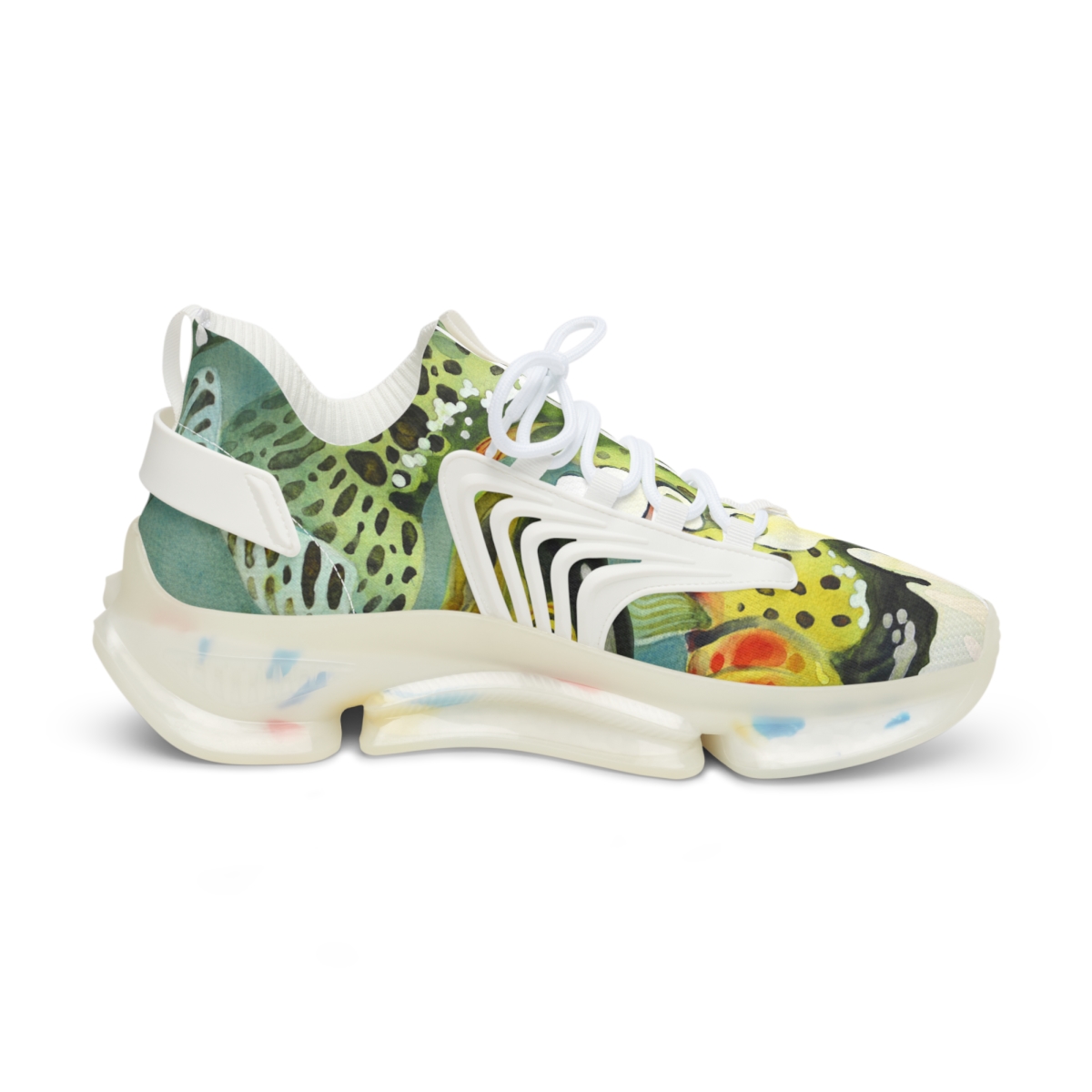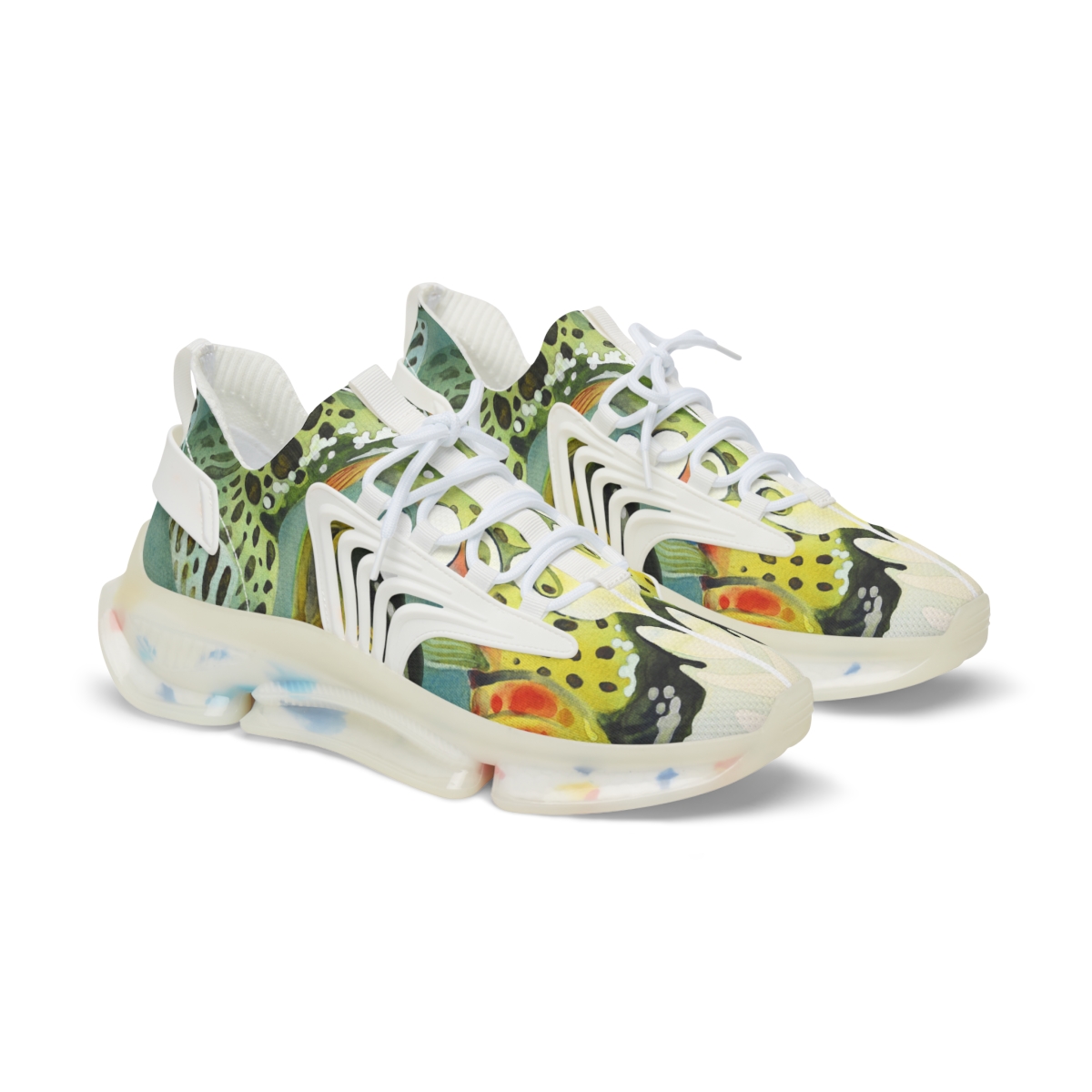 Catch attention when you’re not catching fish. These sports sneakers are designed with the colors and patterns of a greenback cutthroat trout in mind and come with black or white trim options. They include a memory foam sole that adjusts to your feet’s unique contours over time, for enhanced comfort.