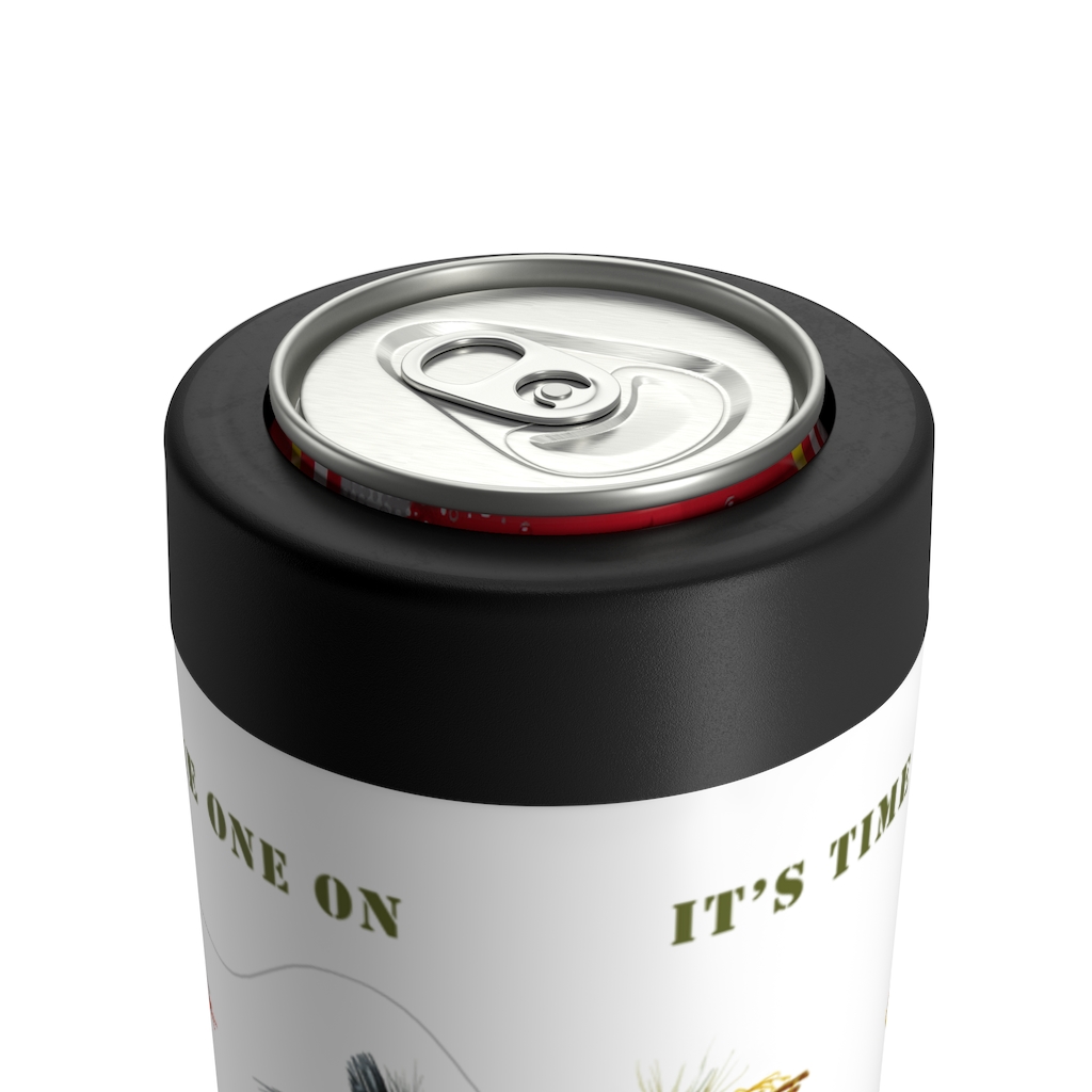 Fishermen work up a thirst and there’s no doubt cracking a cold one helps make a summer day more enjoyable, whether the fish are biting or not. This stainless steel can and bottle holder helps keep that beverage cold and refreshing for a longer time, making for a better time. This item includes unique and beautiful custom art by Tim Gault.