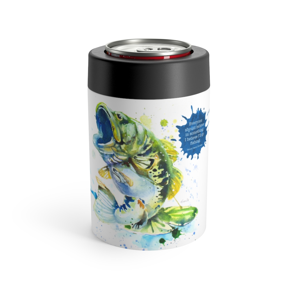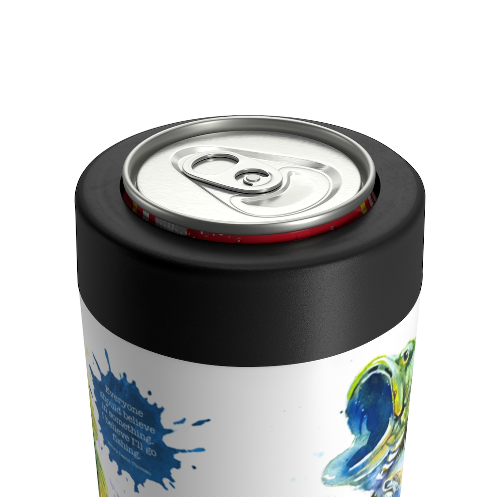 Fishermen work up a thirst and there’s no doubt cracking a cold one helps make a summer day more enjoyable, whether the fish are biting or not. This stainless steel can and bottle holder helps keep that beverage cold and refreshing for a longer time, making for a better time. This item includes unique and beautiful art along with the following quotation: “Everyone should believe in something. I believe I’ll go fishing.” – Henry David Thoreau